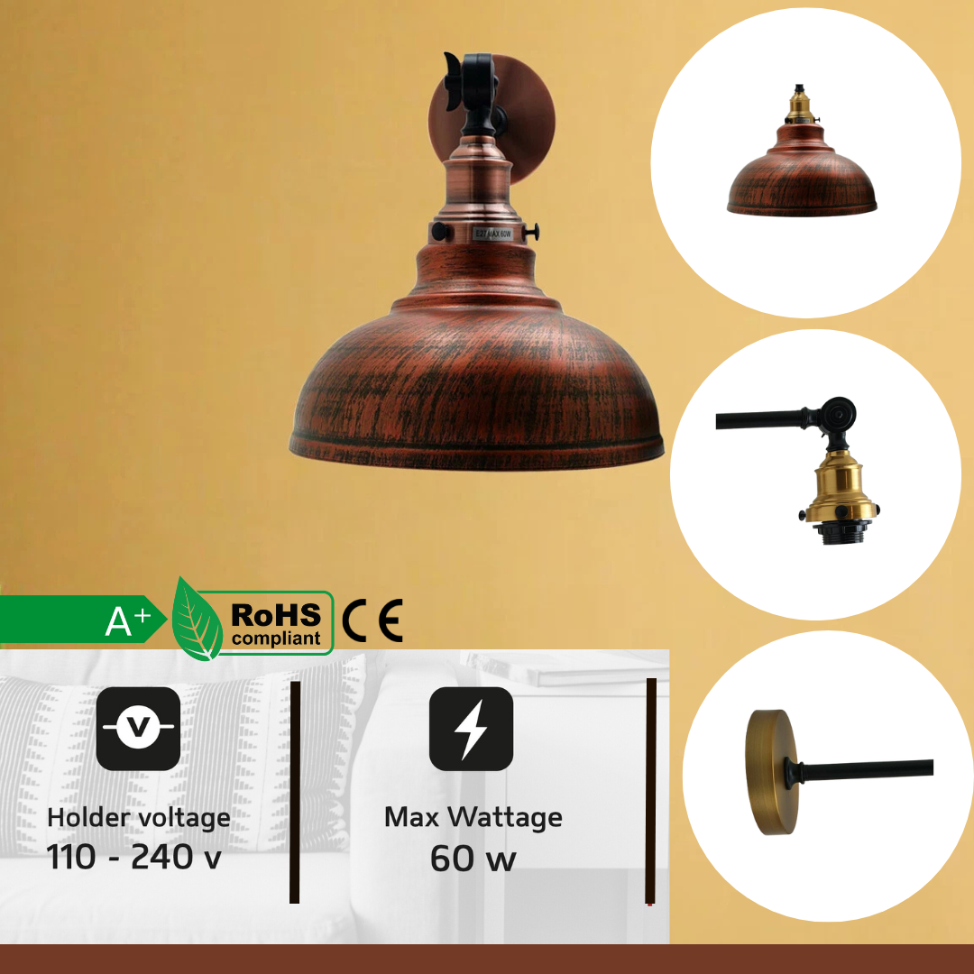 Rustic Red Metal Curvy Brushed Industrial Wall Mounted Wall Lamp Light~3461