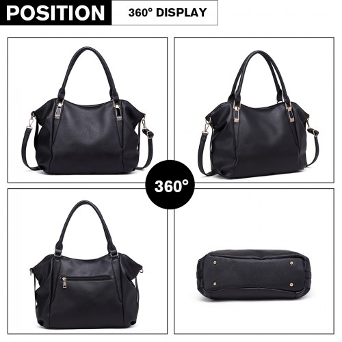 S1716 - Miss Lulu Soft Leather Elegant Simple Shoulder Bag - Black