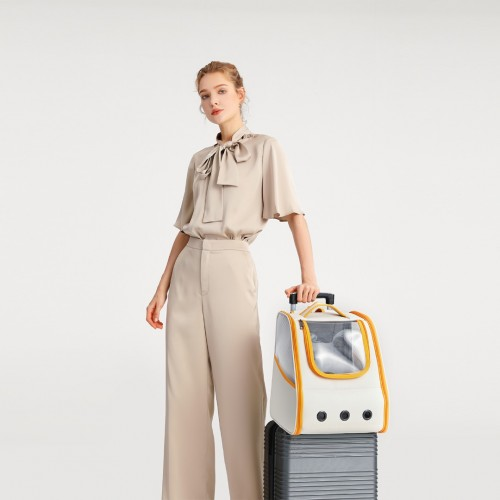 S2229 - Kono Lightweight Portable Breathable Folding Pet Backpack - Beige And Yellow