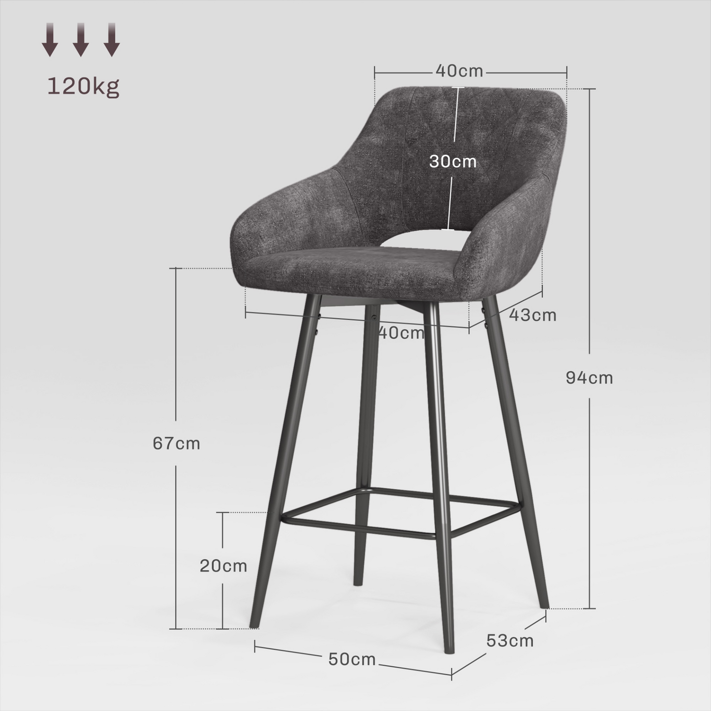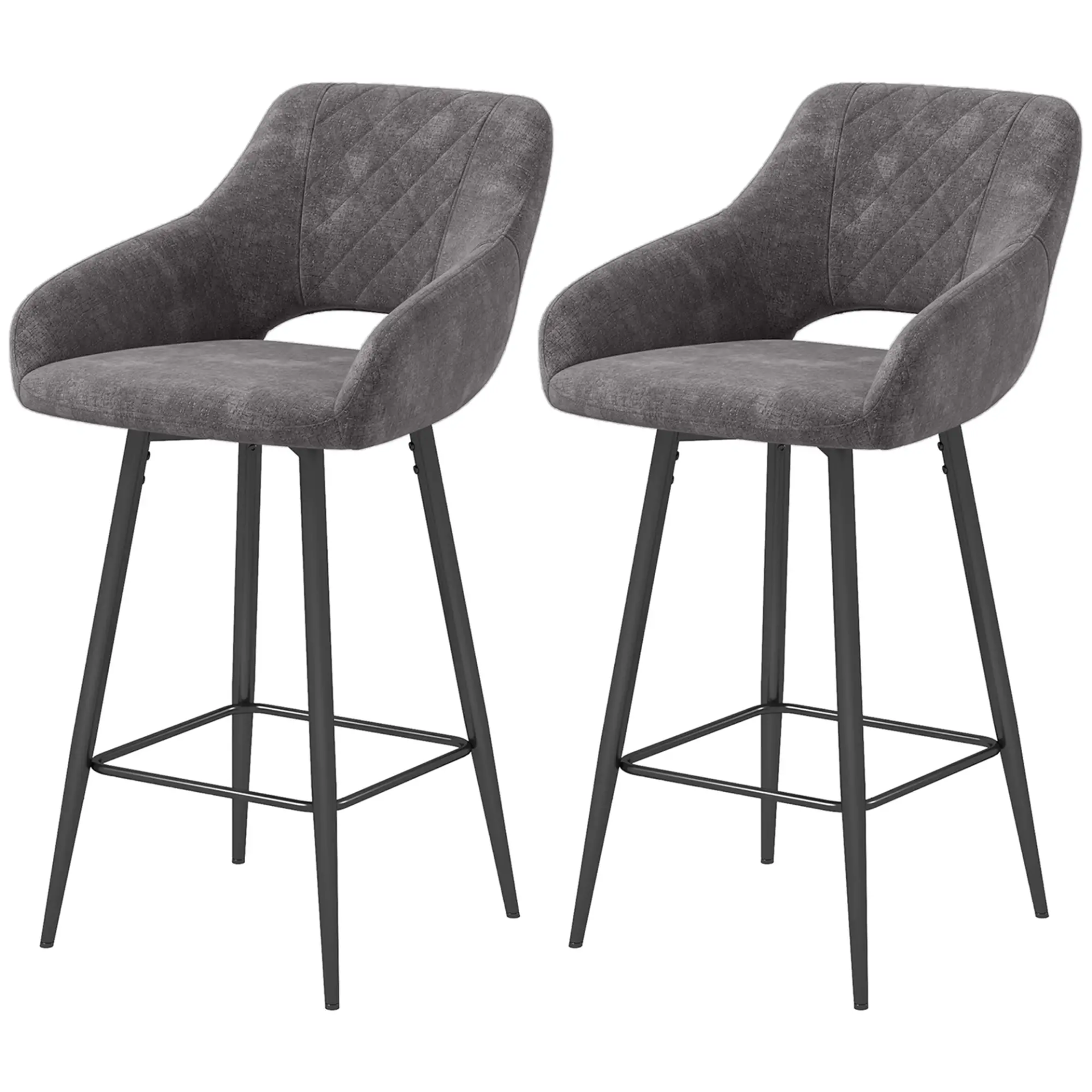 Set of 2 Bar Chair, Velvet-Feel Bar Stools with High Backs and Armrests, Counter Bar Stool, for Living Room Dining Room, Grey | HOMCOM