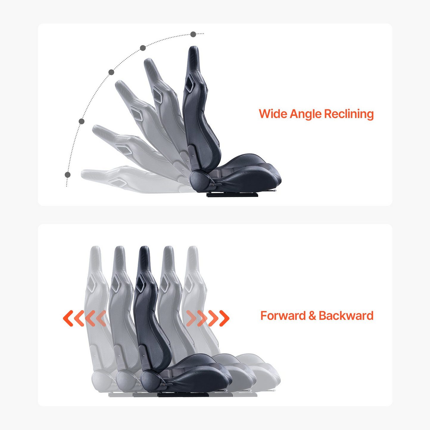 VEVOR 2 Set Racing Seat Adjustable Racing Chair with PVC Leather & Q235B Slider