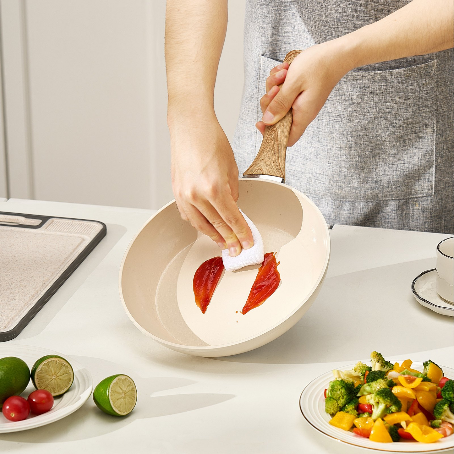 VEVOR 3 Pcs Frying Pan Aluminum Skillet Set 200 240 280 mm Handle Seasoned Beige
