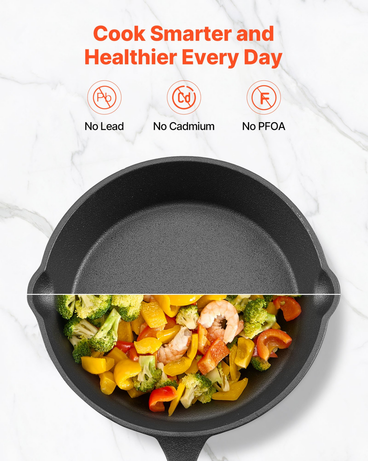 VEVOR 3Pcs Cast Iron Skillet Frying Pan Set 160 220 265 mm Handle Seasoned Black