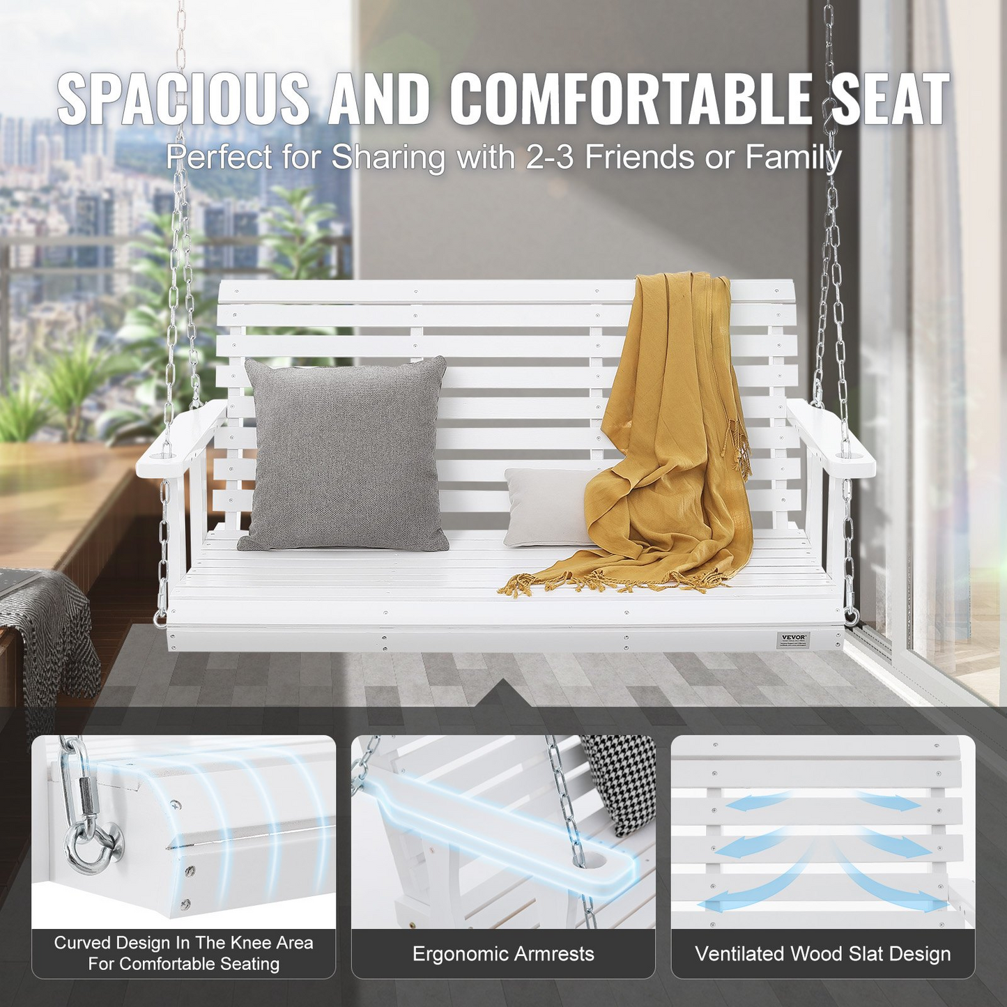 VEVOR 54” Porch Swing Bench Wooden Hanging Outdoor Garden Patio Courtyard White
