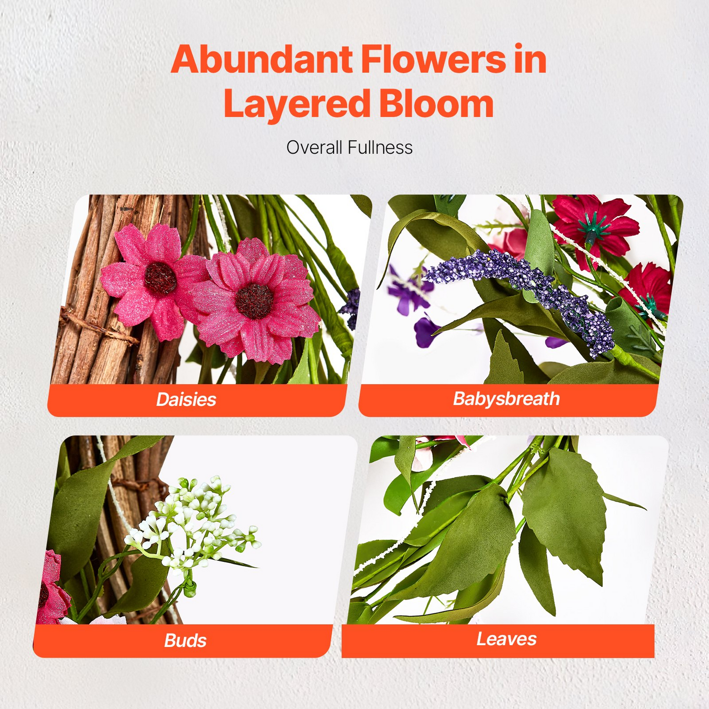 VEVOR Artificial Decorative Wreath 22 in Pink Green Daisies Year Round Wreath