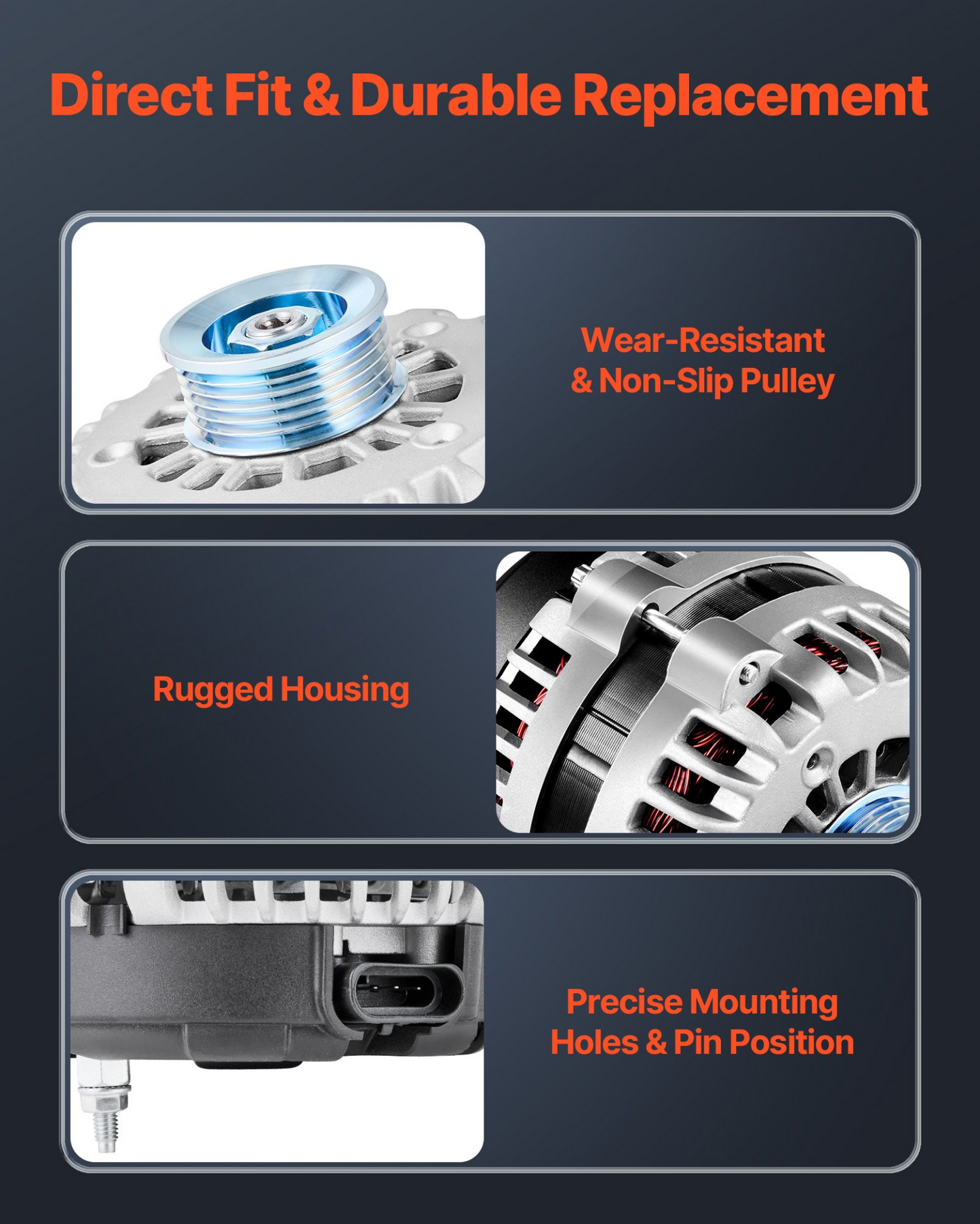 VEVOR Car Alternator 10464443, Fit for Chevrolet Silverado 1500 HD V8 6.0L 2001-2005, Saab 9-7x 2005-2006, Isuzu Ascender 2003-2006, GMC Yukon 2000-2002, Automotive Replacement Alternator 10464453
