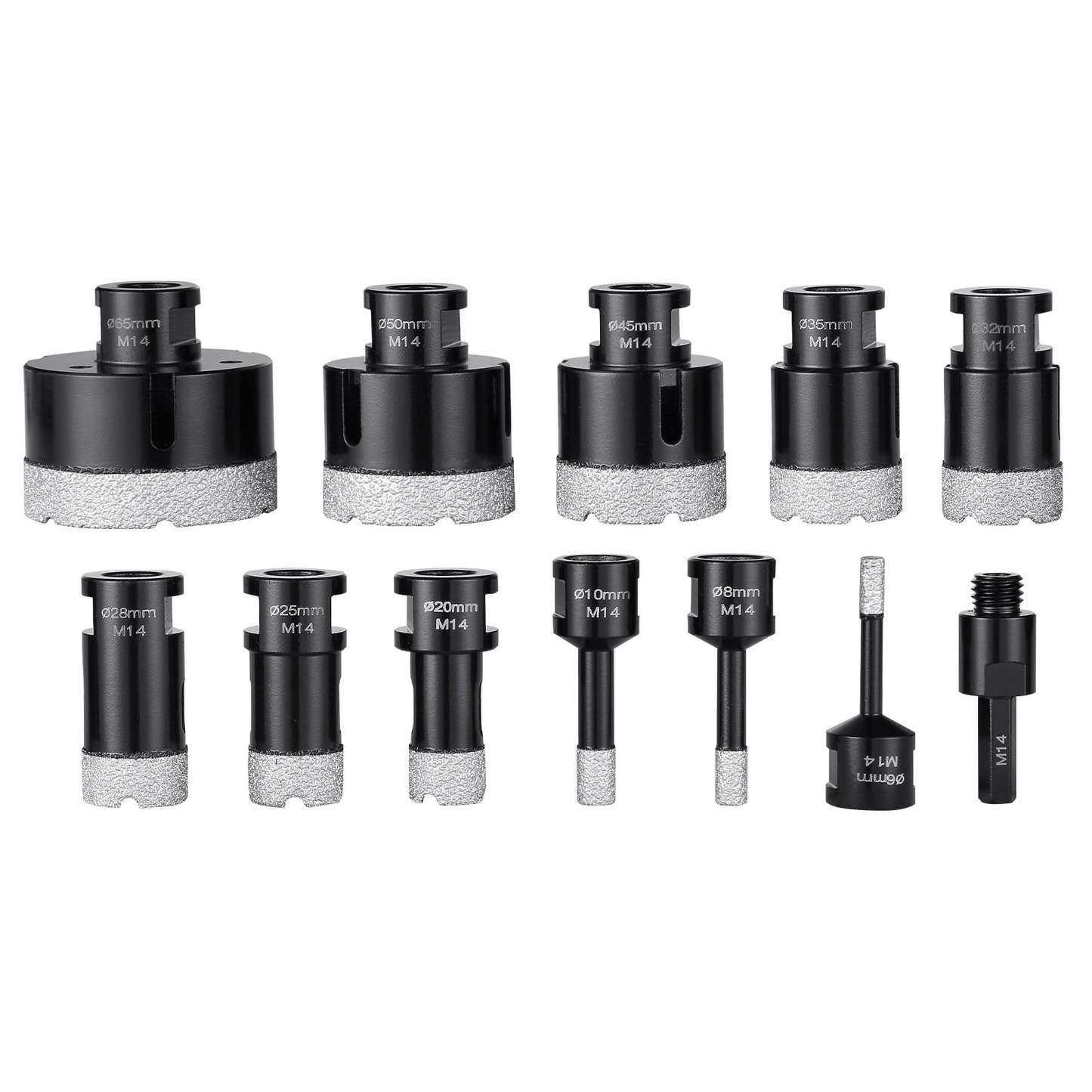 Compatible Machine: Electric Drills, Angle Grinders,Aluminum Foil Toolbox (LxWxH): 11.8 x 7.5 x 3.9 in / 300 x 190 x 100 mm,Net Weight (Including Accessories): 4.4 lbs / 1.97 kg,Item Model Number: SSTZ-007,Quantity: 11 Pieces,Max Drilling Depth: 1.6 in / 40 mm,Material: Diamond + 45# Steel,Connector Specifications: M14,Diameter: 0.2in/6mm, 0.3in/8mm, 0.4in/10mm, 0.8in/20mm, 1in/25mm, 1.1in/28mm, 1.3in/32mm, 1.4in/35mm, 1.8in/45mm, 2in/50mm, 2.6in/65mm