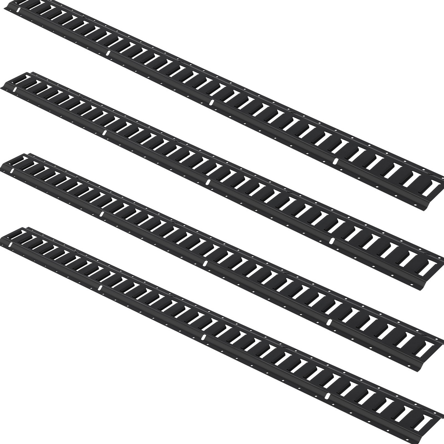 Load Capacity: 2000 lbs/907 kg,Length: 5 ft/1524 mm,Breaking Strength: 6000 lbs/2722 kg,Item Model Number: JC23-ETR-5FT4PCS,Product Weight: 32.85 lbs/14.90 kg,Width x Thickness: 5.20 x 0.09 in/132 x 2.3 mm,Slot Size: 0.98 x 2.36 in/25 x 60 mm,Number of Slots: 30
