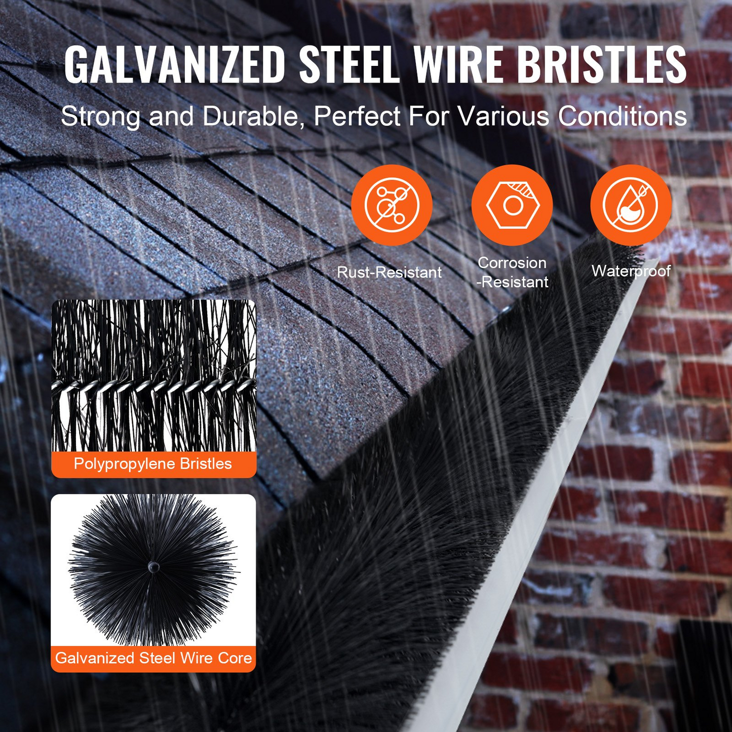 VEVOR Gutter Brush, 60 Feet Total Length 5.25 inch Diameter Gutter Cleaning Tools, Ground-Level Gutter Brush Leaf Guard for 5 Inch Gutters, Easily Clear roof Leaves and Debris, 20 Pack