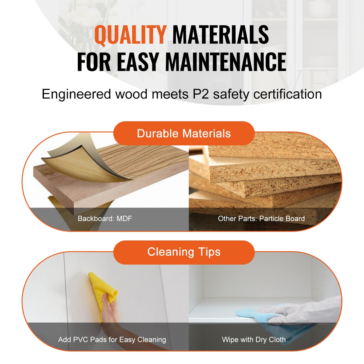 VEVOR Kitchen Pantry Cabinet, 60" Tall Food Pantry Storage Cabinet, 110LBS Freestanding Storage Cabinet Cupboard with 3 Shelves(2 Adjustable), Engineered Wood Utility Pantry for Kitchen, Dining Room