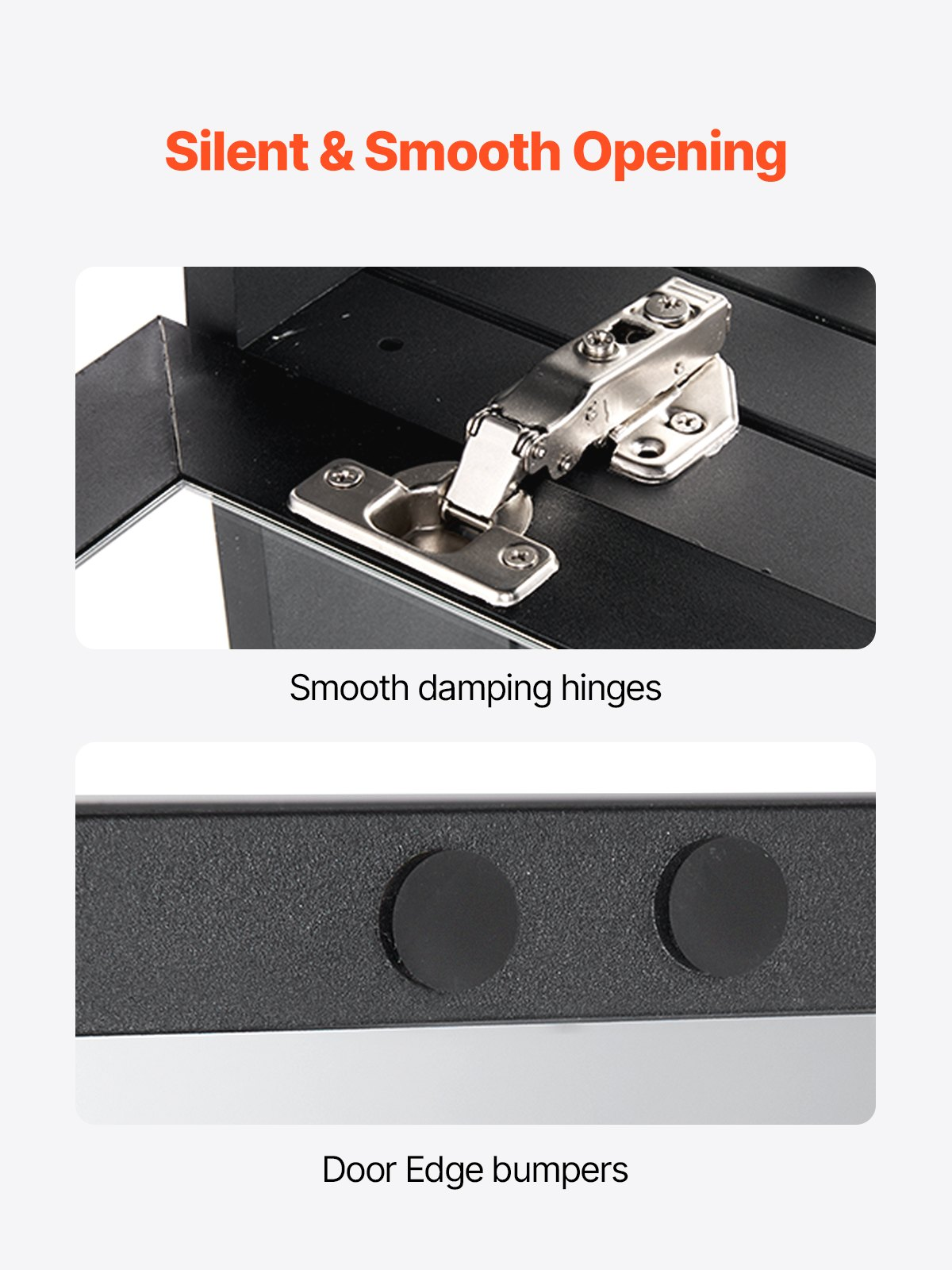 Number of Shelves: 2,Materials:,Cabinet Frame: Aluminum Profile (6063),Item Model Number: ML26×30-2,Shelf: Tempered Glass,Number of Doors: 2,Door Frame: Aluminum Profile (6063),Product Dimensions: 26 x 5 x 30 in / 662 x 135 x 762 mm,Mirror: HD Glass,Net Weight: 36.16 lbs / 16.4 kg,Number of Mirrors: 7