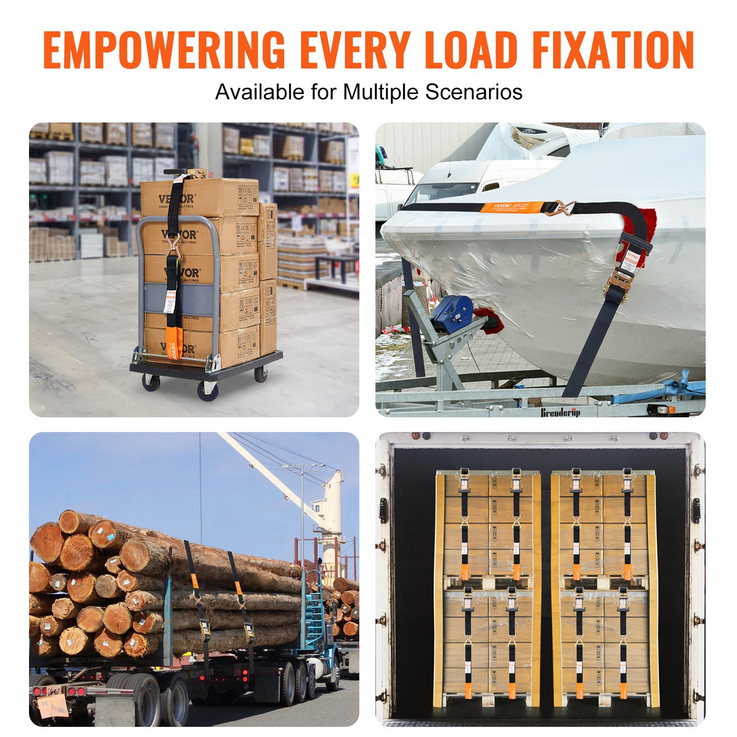 VEVOR Ratchet Tie Down Straps (4PK), 11128 lb Break Strength, Double J Hook Includes 4 Premium 2" x 8' Rachet Tie Downs with Padded Handles, for Moving Securing Cargo, Appliances, Lawn Equipment
