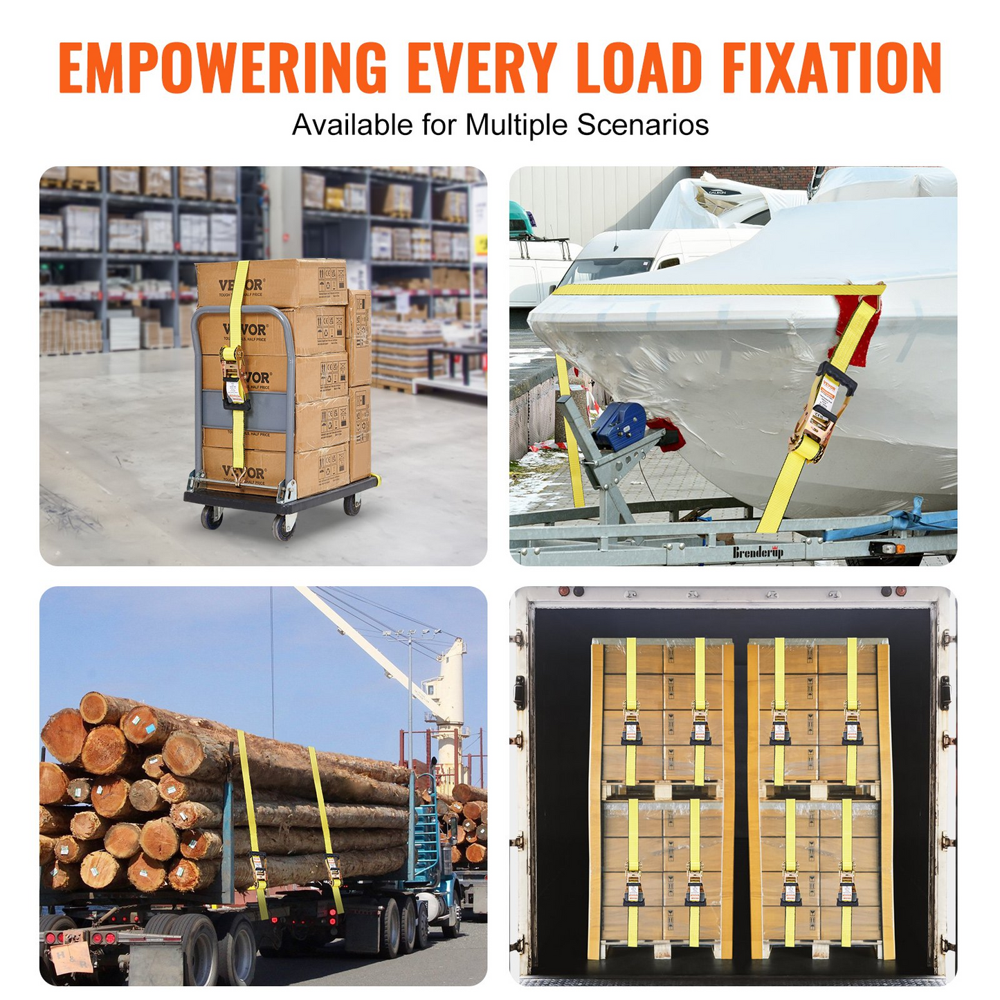VEVOR Ratchet Tie Down Straps (4PK), 5000 lb Break Strength, Double J Hook Includes 4 Premium 2" x 15' Rachet Tie Downs with Padded Handles, for Moving Securing Cargo, Appliances, Lawn Equipment