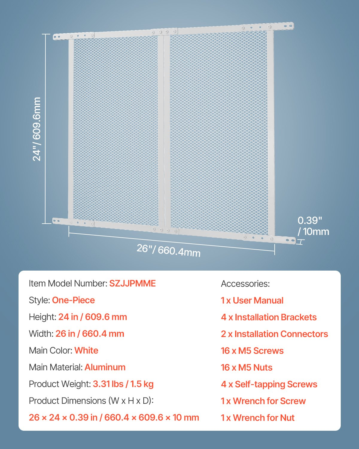 Main Color: White,Product Dimensions (W x H x D): 26 x 24 x 0.39 in / 660.4 x 609.6 x 10 mm,Item Model Number: SZJJPMME,Product Weight: 3.31 lbs / 1.5 kg,Style: One-Piece,Height: 24 in / 609.6 mm,Width: 26 in / 660.4 mm,Main Material: Aluminum