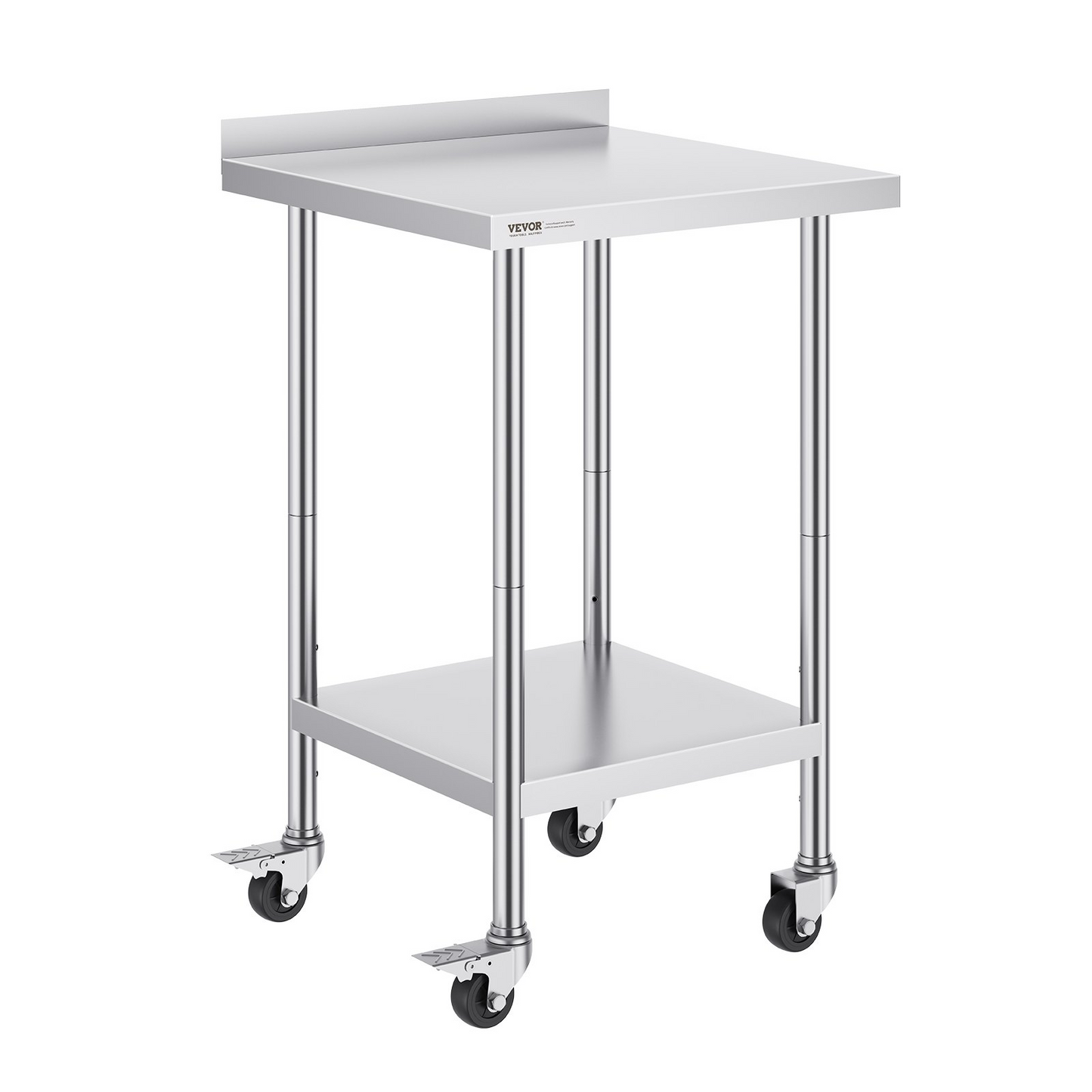 VEVOR Stainless Steel Work Table Commercial Food Prep Table 24"x24" with Casters