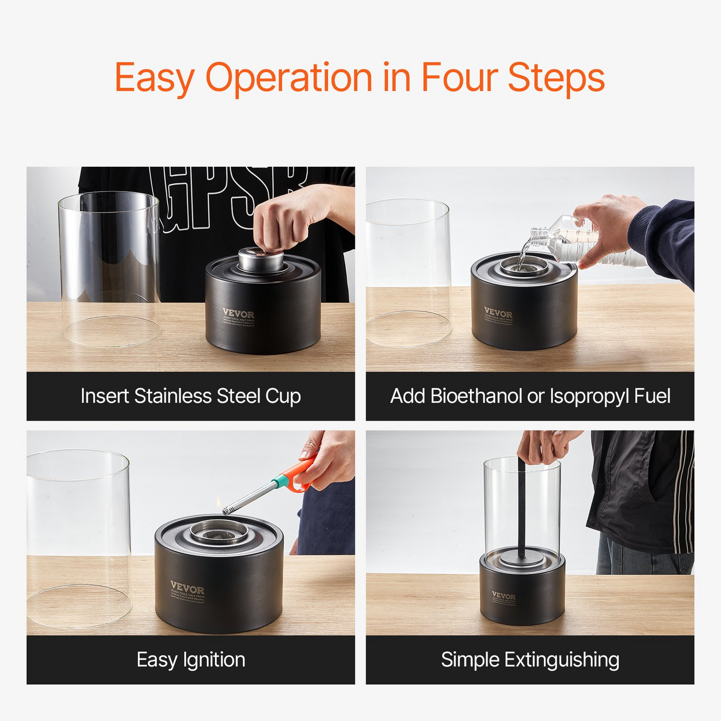 VEVOR Tabletop Fire Pit 6 inch Metal Fireplace Indoor Outdoor with Glass