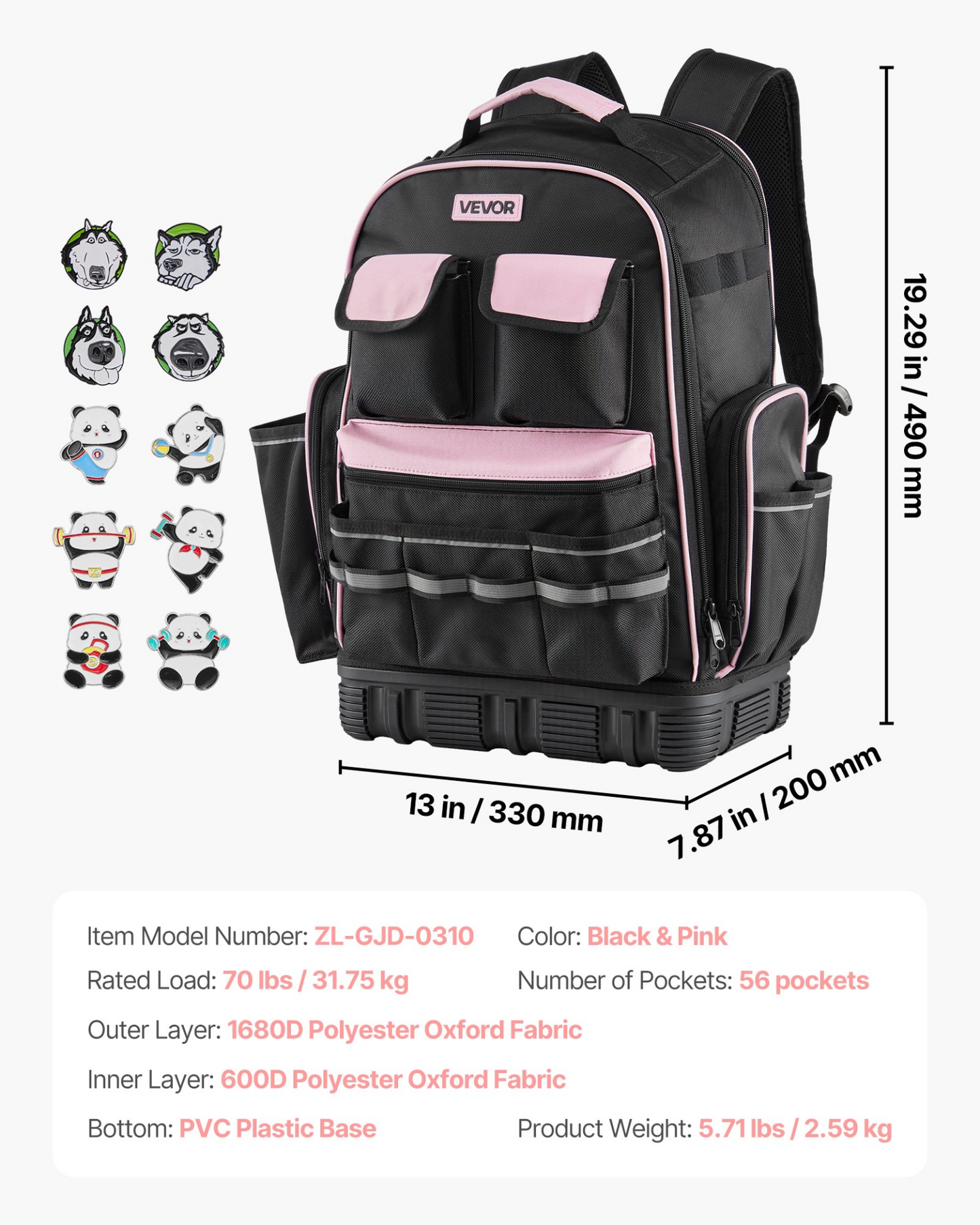 Inner Layer: 600D Polyester Oxford Fabric,Color: Black & Pink,Outer Layer: 1680D Polyester Oxford Fabric,Item Model Number: ZL-GJD-0310,Product Weight: 5.71 lbs / 2.59 kg,Bottom: PVC Plastic Base,Product Dimensions: 13 x 7.87 x 19.29 in / 330 x 200 x 490 mm,Number of Pockets: 56 pockets,Main Material:,Rated Load: 70 lbs / 31.75 kg