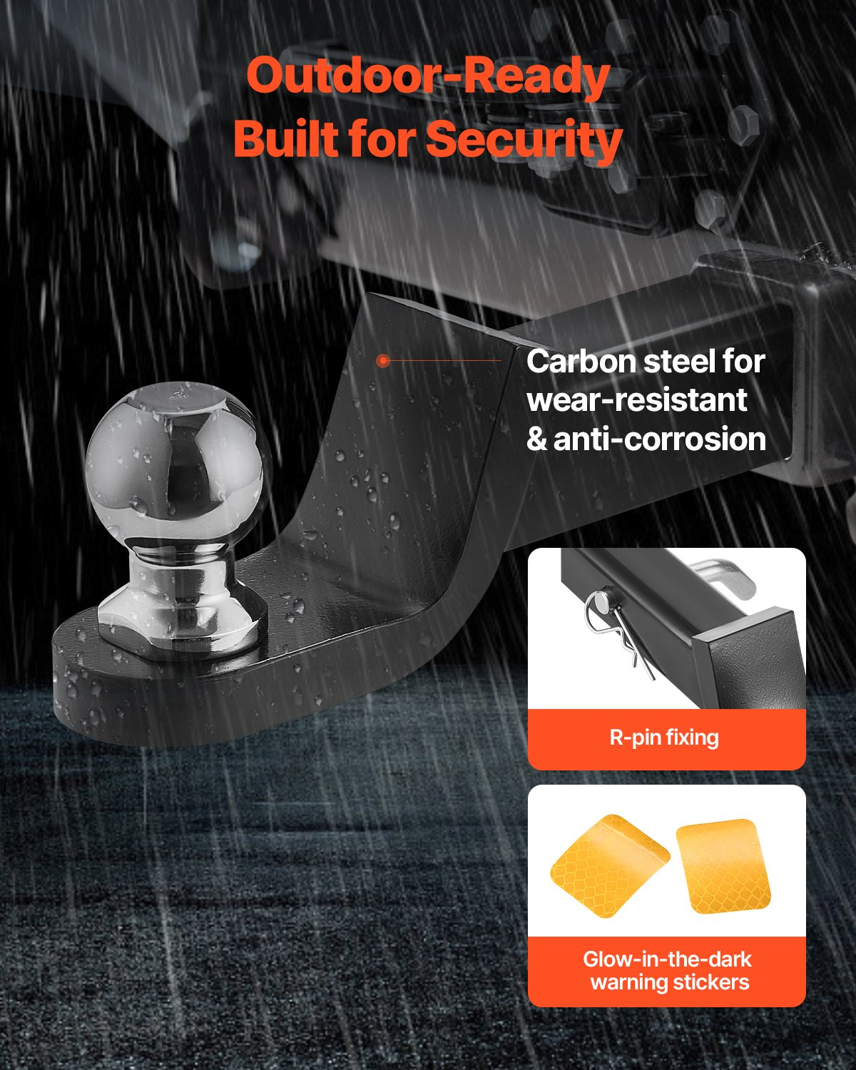 Type: Single Ball Mount,Receiver Fixing Method: Pin + R-pin Fixed,Max Towing Capacity: 7500 lbs / 3400 kg,Ball Mount Fixing Method: Threaded Nut Securing,Item Model Number: TK-TC-2",Ball Mount Size: 2 in / 50 mm,Product Dimensions: 12.2 x 2.5 x 4.8 in/310 x 63 x 122 mm (Trailer Hitch without Ball),Net Weight: 9.9 lbs / 4.5 kg,Main Material: Carbon Steel,Receiver Size: 2 in / 50 mm