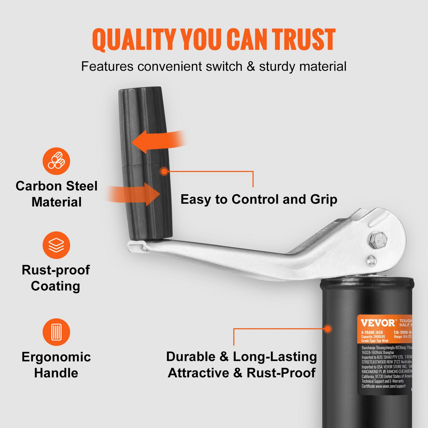 VEVOR Trailer Jack, Trailer Tongue Jack A-frame Bolt on Weight Capacity 2000 lb, Trailer Jack Stand with Handle for lifting RV Trailer, Horse Trailer, Utility Trailer, Yacht Trailer