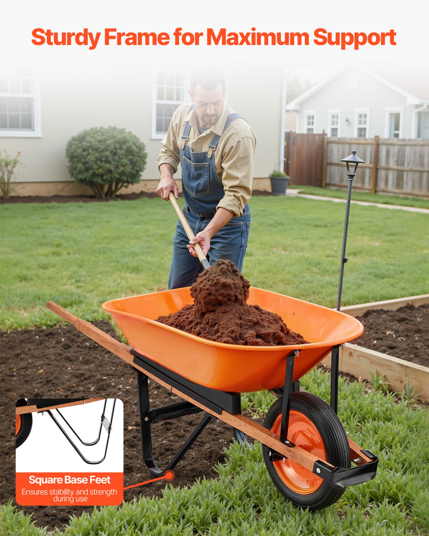 Tire Size: φ16 x 4'',Color: Orange + Black,Maximum Load Capacity: 265 lbs / 120 kg,Product Model: WB-1000,Cart Bed Dimensions: 35.83 x 24.61 x 9.06 in / 91 x 62.5 x 23 cm,Product Dimensions: 55.12 x 24.41 x 22.83 in / 140 x 62 x 58 cm,Net Weight: 28.22 lbs / 12.8 kg,Main Material: Iron + PU (Solid Foam Wheel)