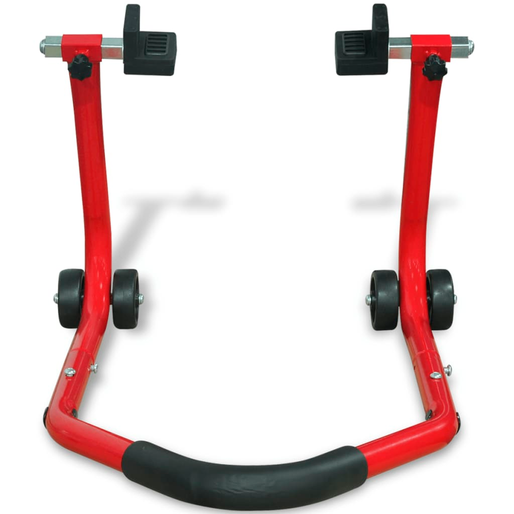 This motorcycle rear paddock stand fits almost all modern sports bikes and dirt bikes, since it is adjustable for various swing arm widths. The twin castors provide extra stability when lifting and the broad, U-shaped support offers improved stability while the motorcycle is lifted. The non-slip rubber handle offers a comfortable and secure grip. Designed for stability, and manufactured from durable steel tubing in a painted finish, this motorcycle rear paddock stand is a valuable tool for basic motorcycle maintenance.