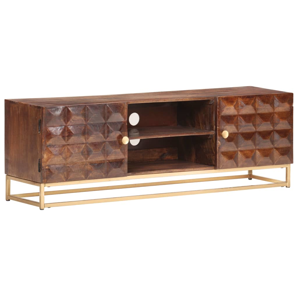 This stylish TV cabinet is meant to be an eye-catching addition to your interior. This lowboard is made of solid mango wood. This mango wood has the strength to bear the weight and stands the wear and tear of time. Thanks to its powder-coated iron legs, this beautifully-designed cabinet is stable, durable, and stunning. This TV stand provides ample space for storing your multimedia appliances, books, as well as other essentials.